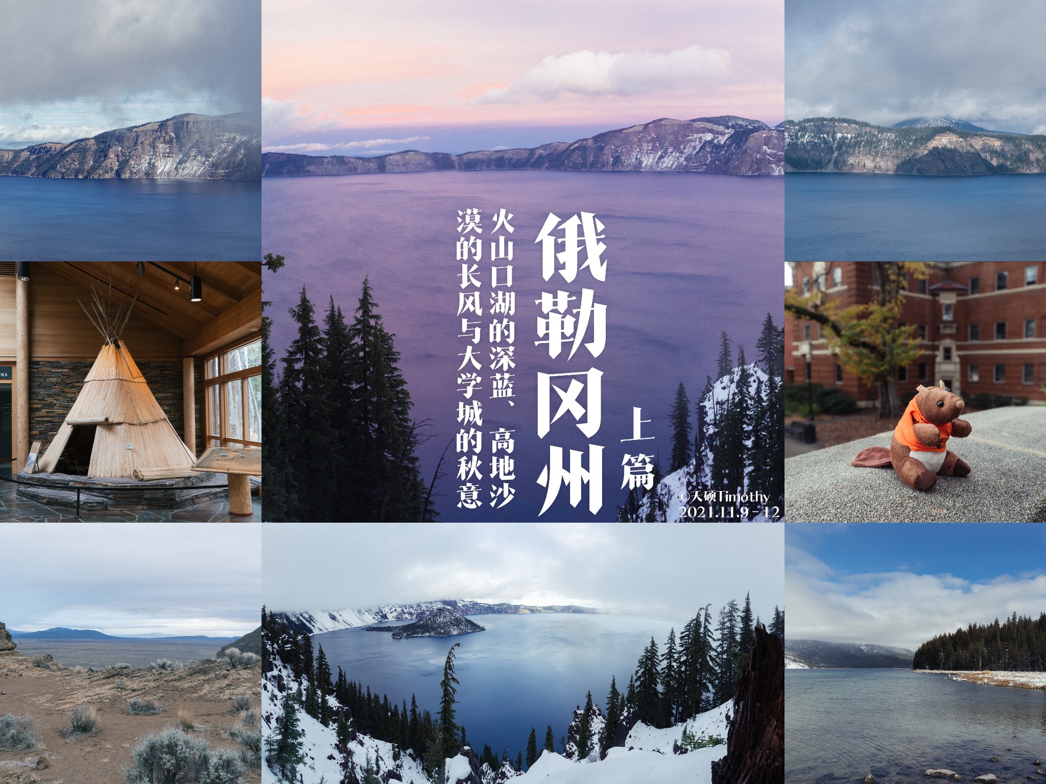 这篇游记整理的是我于2021年11月9日至12日走访 俄勒冈州 的上篇行程。提到俄勒冈,人们或许首先会想到火山口湖;而对我而言,这片土地的魅力也确实由那一抹高山深蓝所定义。 为了等待它在云雾间显现,我花了三天时间与天气周旋,终于在秋冬交界的高地上,如愿见到了那片被杰克· 伦敦 盛赞的人间绝景。只是俄勒冈的精彩从不止于此:小镇的秋意、火山地貌的荒凉壮阔,以及高地沙漠的长风,也一并构成了这段旅程难忘的底色。 【火山口湖·世界最美的地方】 “从此以后,世上的风景名胜,再也没有一处能让我觉得,那是我所见过最美的事物;因