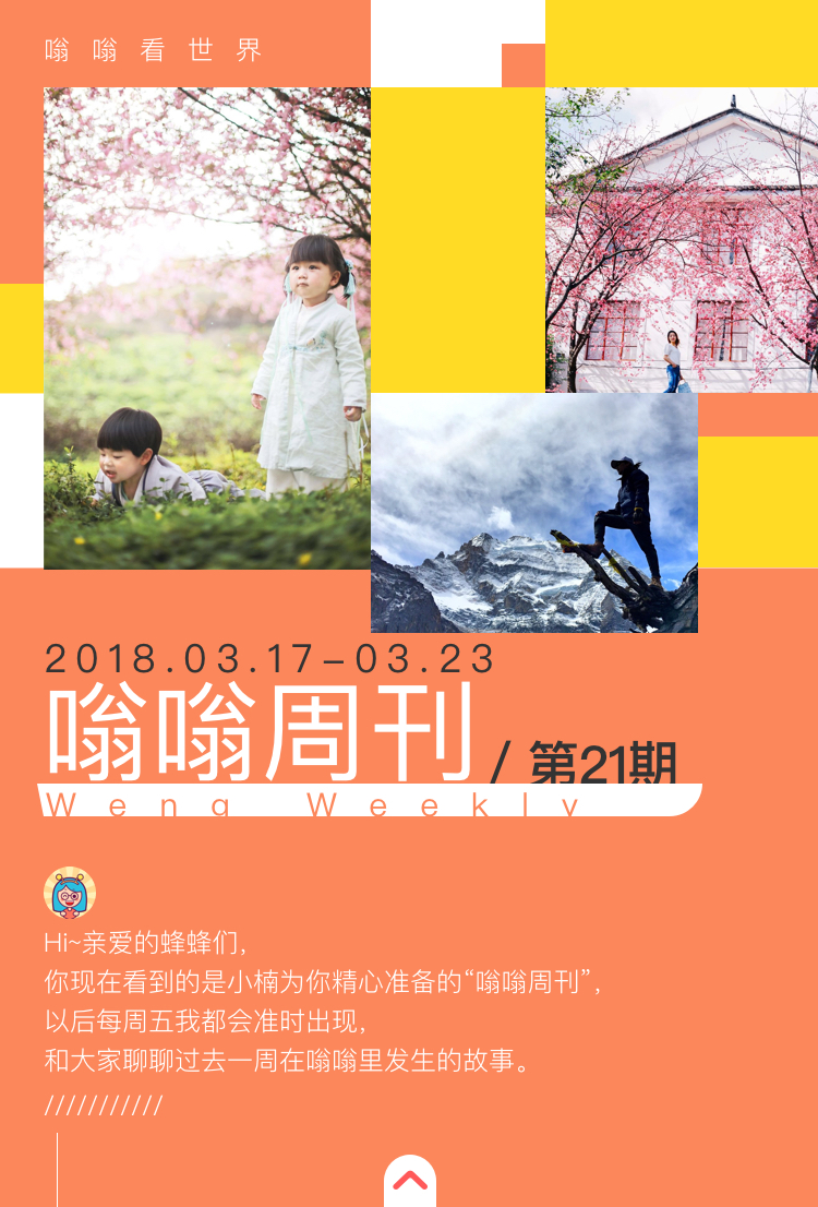 上面是本期的嗡嗡周刊,不知道你是被神秘部落的旅行奇遇吸引,还是钟情于缤纷灿烂的樱花,不管是什么,有想去的地方就出发吧!春天里,如果不看花花草草又该怎样度过呢?