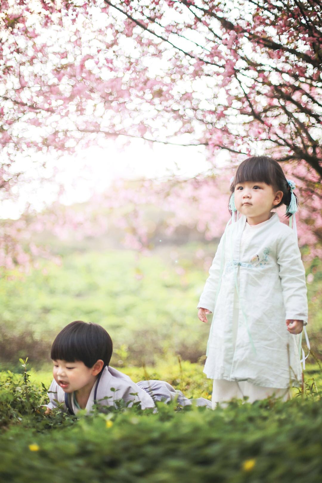 除了那些知名的赏花地,其实最美的风景就在我们身边。@lovelyliya 就在贵阳市内的一处农场附近,发现一片无人问津的樱花林。既然没人当然要抓紧机会拍拍拍啦~图中的两小只可爱宝宝,古风装扮,在一片花海中肆意玩乐,好像拍出了《仙剑奇侠传》的儿童版本。如果你想要看更多萌娃照片,就去这位蜂蜂的主页逛逛吧。
