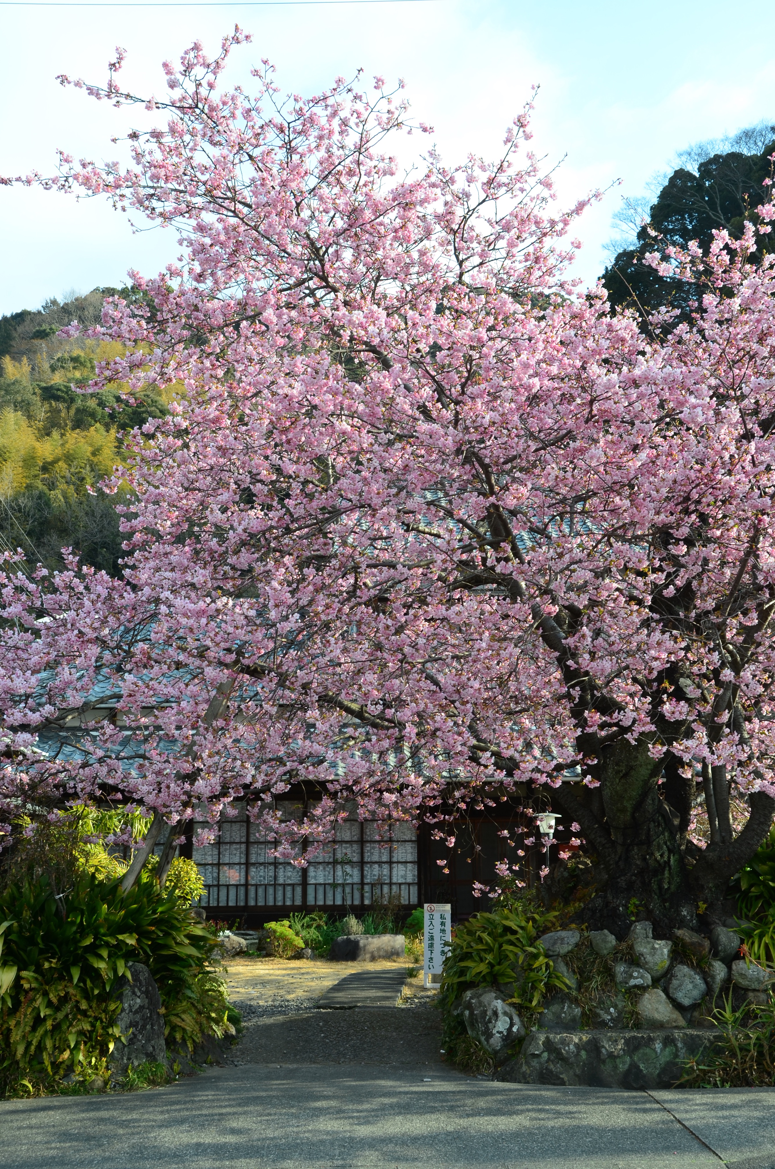 不要小看图上这株樱花树,其实它大有故事,因为没有它就没有现在日本的河津早樱。传说在1956年河津有位市民,偶然在河边捡了一株樱花树种在家门口,养了十年之久才开花。重点是这株河津樱要比日本其他地区的樱花早绽放两个月,且花期也有一个月之久。图上这株河津樱便是当年在河边捡回来的树苗,它至今还在守护着河津,见证着时光流转,一个又一个樱花季的到来。