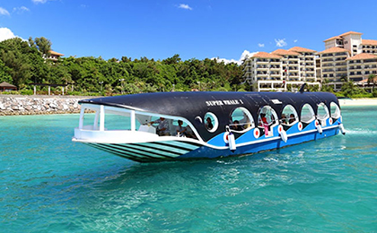 乘坐【玻璃底船】,航行中水下环境一目了然,自由自在的鱼儿色彩斑斓,美丽的海洋世界尽收眼底。