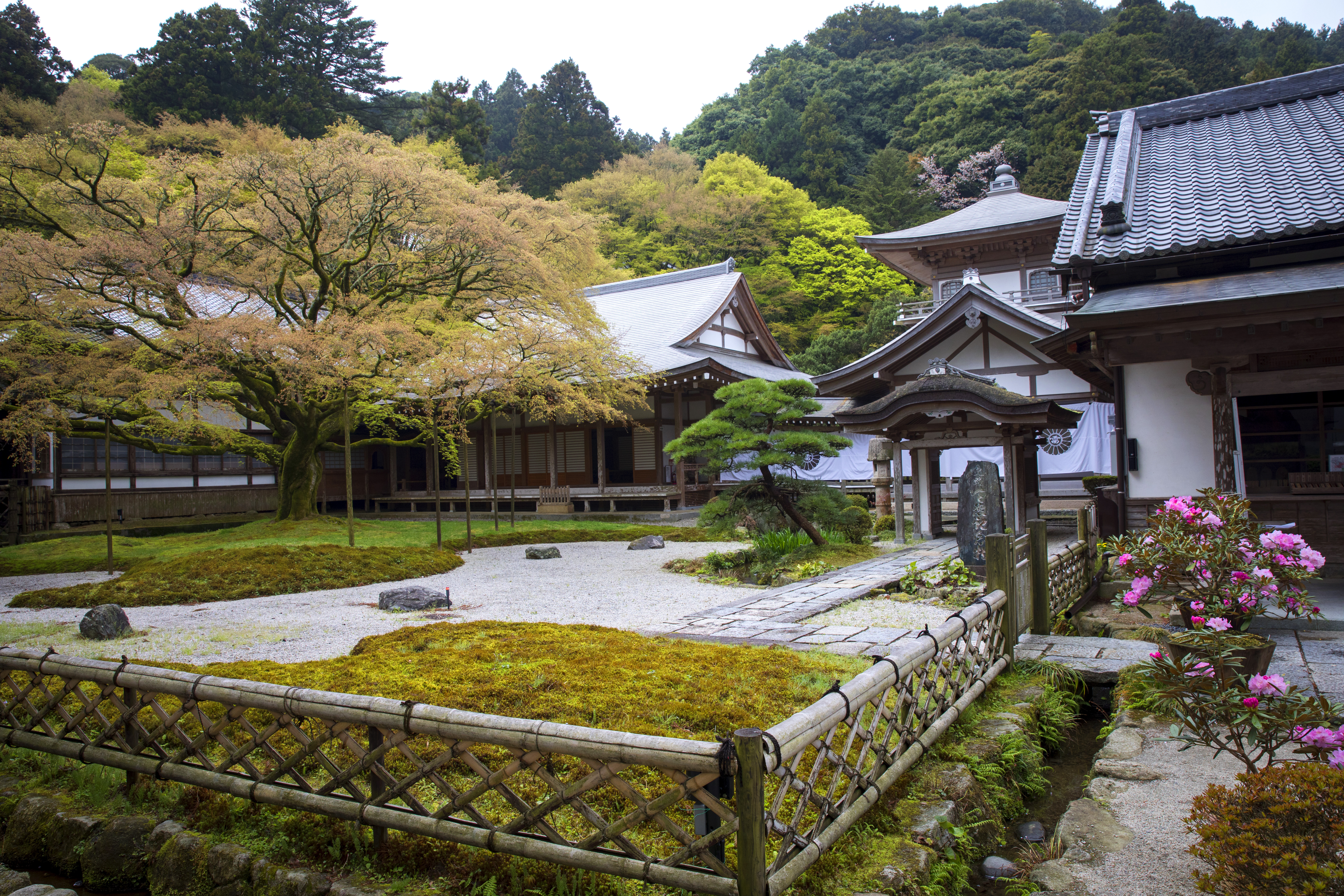 深受唐宋园林建筑影响,又结合了日本自身文化及景观,这便是【日本庭院】的独特之美,院内绿意盎然四季常青,花香四溢,在此感受日本自然及人文的精粹。