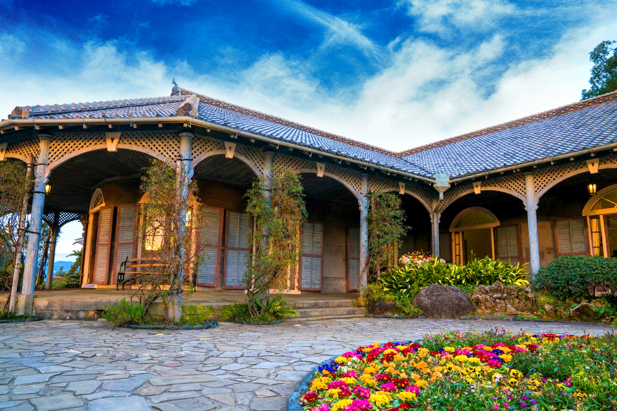 踏足【哥拉巴园】,屹立在南山手之丘,尽收长崎港于眼底。在此保留了百年以来的西式建筑,充满外国人居留地的浪漫气息。情侣一起碰触3处“心”形石头就会得到幸福的传说经久传颂,等待您在此处许下浪漫之约。