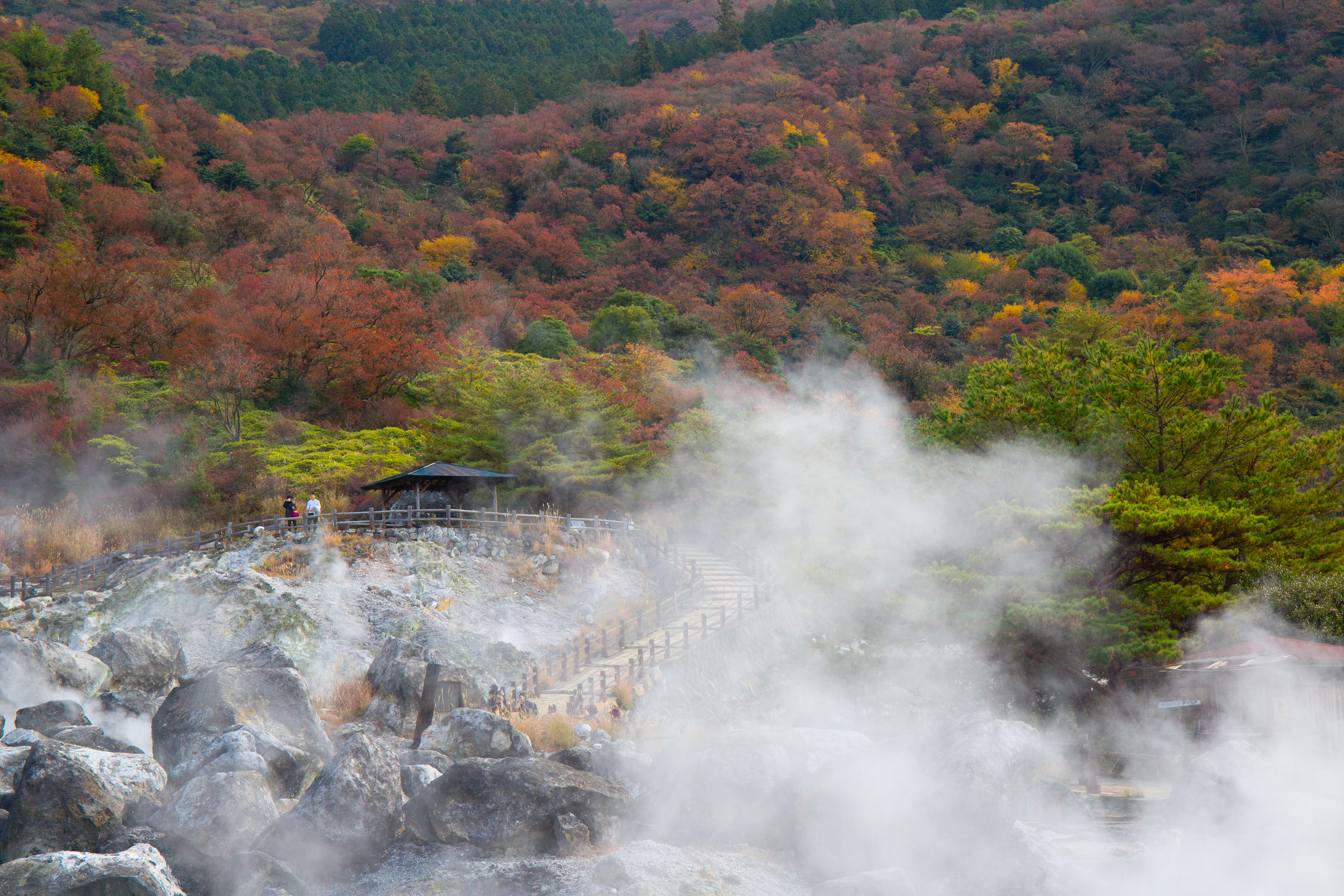 位于岛原半岛的【云仙地狱谷】因终年的烟雾袅袅和特殊的地貌而得名,水气朦胧,白烟缭绕,随处可见硫磺岩石和地壳活动的印记,让你深感大自然的鬼斧神工和日本的温泉文化。