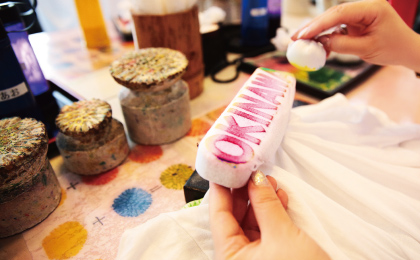 【琉染体验】(送T恤)是选用当地特有的珊瑚横切面为主体的一种传统工艺,在印有皇家LOGO的T恤上来亲自动手体验琉染的快乐吧。