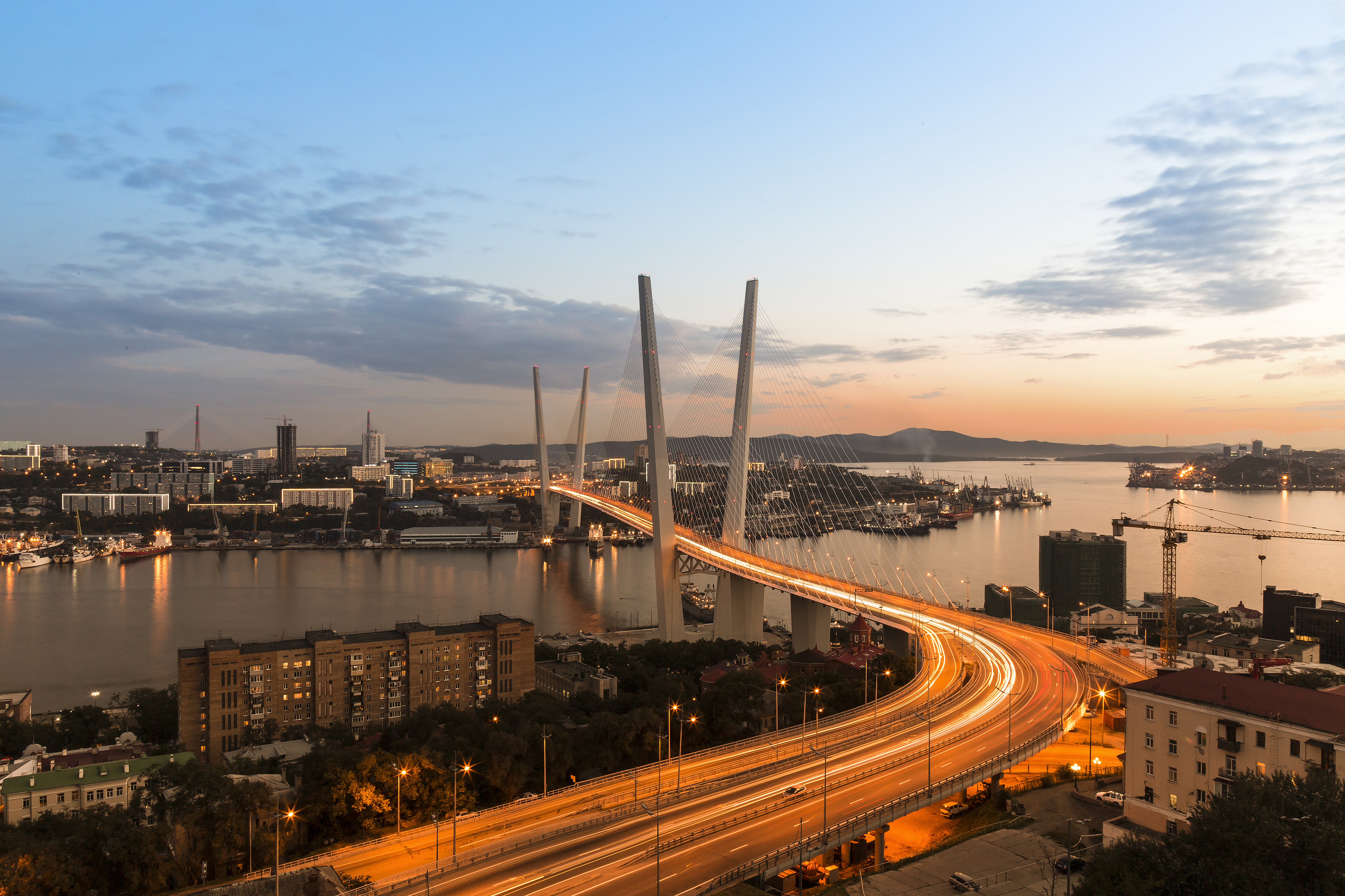 【金角湾大桥】是海参崴金角湾上的拉索式跨海大桥,它也是海参崴重要的标志建筑。桥梁全长3公里左右,犹如一道长虹悬挂在海湾上,蔚为壮观。行程中您还可自由购物,尽情体验海参崴独特的美景。