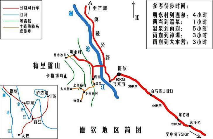 其他时间:要看运气,一般在清晨太阳刚出来的时候,更容易看到雪山。但梅里雪山气候瞬息万变,卡瓦格博峰突现的机会也不少。有的游客在丽江看天气,雨则不动,晴即前往,结果往往事与愿违,其实看山是一种心灵的感受,尤其是看神山。一种正确的思想是不太关心时间和天气,而是带一颗心,去看神山。