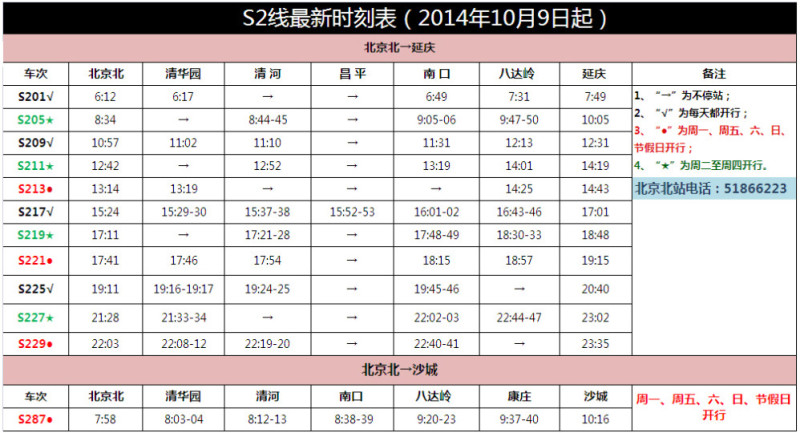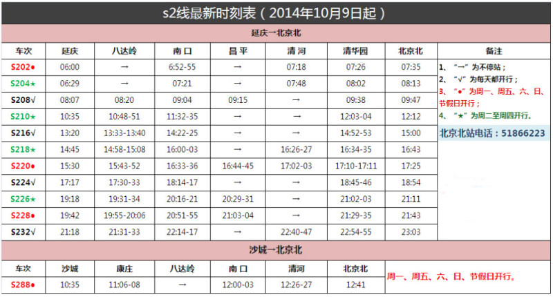 1、S2线全程不对号入座,可一卡通刷卡或购买车票、北京北到延庆票价6元;