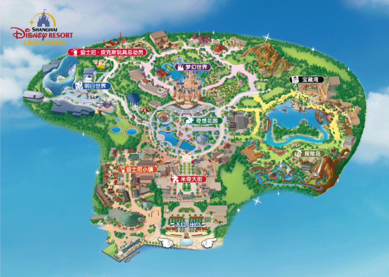 上海迪士尼乐园分为七大主题园区:米奇大街、奇想花园、探险岛、宝藏湾、梦幻世界、明日世界、迪士尼·皮克斯玩具总动员。各个主题区各具特色,共同构成了上海迪士尼乐园的奇妙旅程。