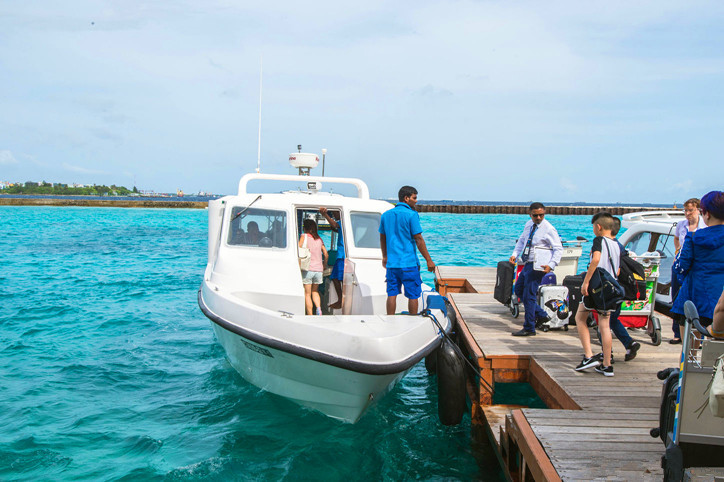 位于马累附近环礁(北马累、南马累环礁、阿里环礁)的度假村普遍会用快艇接送旅客,根据距离的远近价格从50-300美元不等。部分一价全包的海岛已经涵盖了快艇费用,无需另行支付。晕船的游客可在抵达马累国际机场后,服用晕船药以应对接下来较长时间的船舶行程。