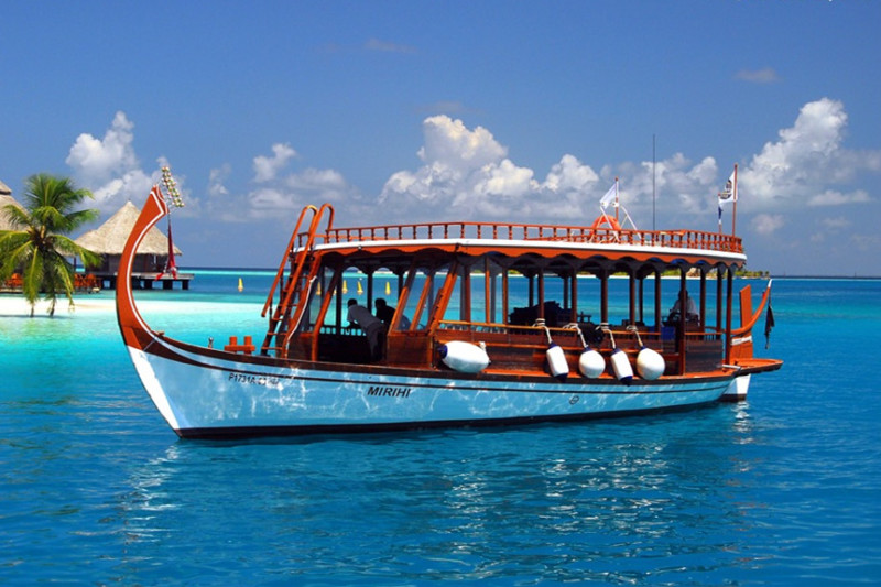 多尼船是马代当地人出行的海上交通工具,尖尖的船头颇具特色。在马累岛北侧码头(Boduthakurufaanu Magu)常有不少多尼船等在岸边,游客可以和船夫讲价,租赁多尼船出海游玩。价格一天在20-40拉菲亚(约150-300人民币)。度假村也可以租赁,不过价格却贵了不少,一艘多尼船租赁价格需要300-500美元(约2000-3500人民币)。