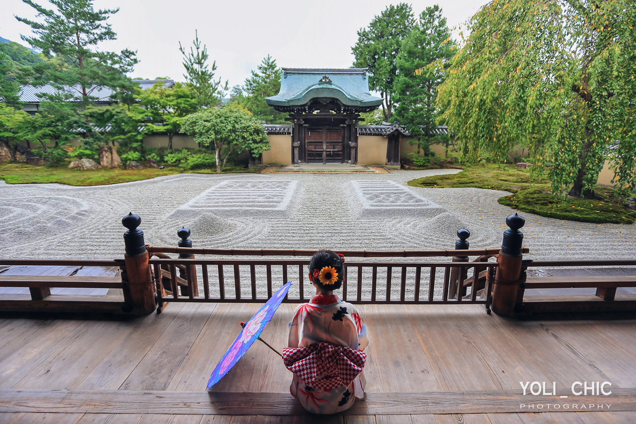 在京都旅行,最好放下脚步,找个幽静的庭园静坐一会儿,让石庭中雅致的枯山水洗涤你的心灵,在静寂中感受一种纯粹的美,让自己放空、冥思。