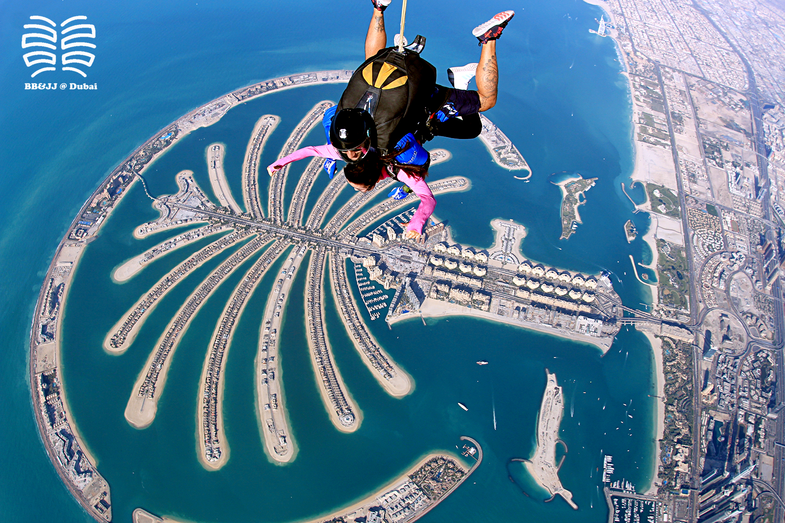 迪拜棕榈岛(Palm Jumeirah)是全球最美的跳伞地之一,在迪拜做“空中飞人”是不可或缺的体验。空中俯瞰迪拜全景是令人毕生难忘的经历:卓美亚棕榈岛变成一叶浮于海面的棕榈叶,浩瀚大漠比肩现代建筑林立的迪拜新城,迪拜河如银带蜿蜒在满载历史的古老城区。从15,000英尺的高空跳落从开始的自由落体到随后的开伞翱翔跳伞者不但能体验到惊险刺激,更能感受无与伦比的空中美景。