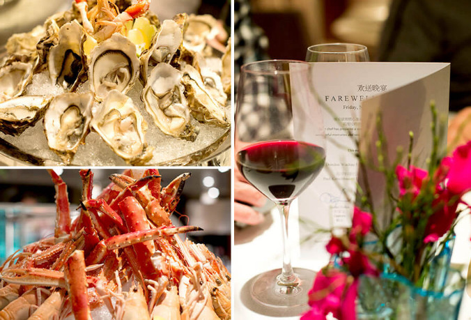 较自助餐正式,欢迎晚宴提供从前菜到甜点的四道式餐点,搭配红白葡萄酒。欢送晚宴为海鲜自助,生蚝、帝王蟹、南美大虾等吃个过瘾。