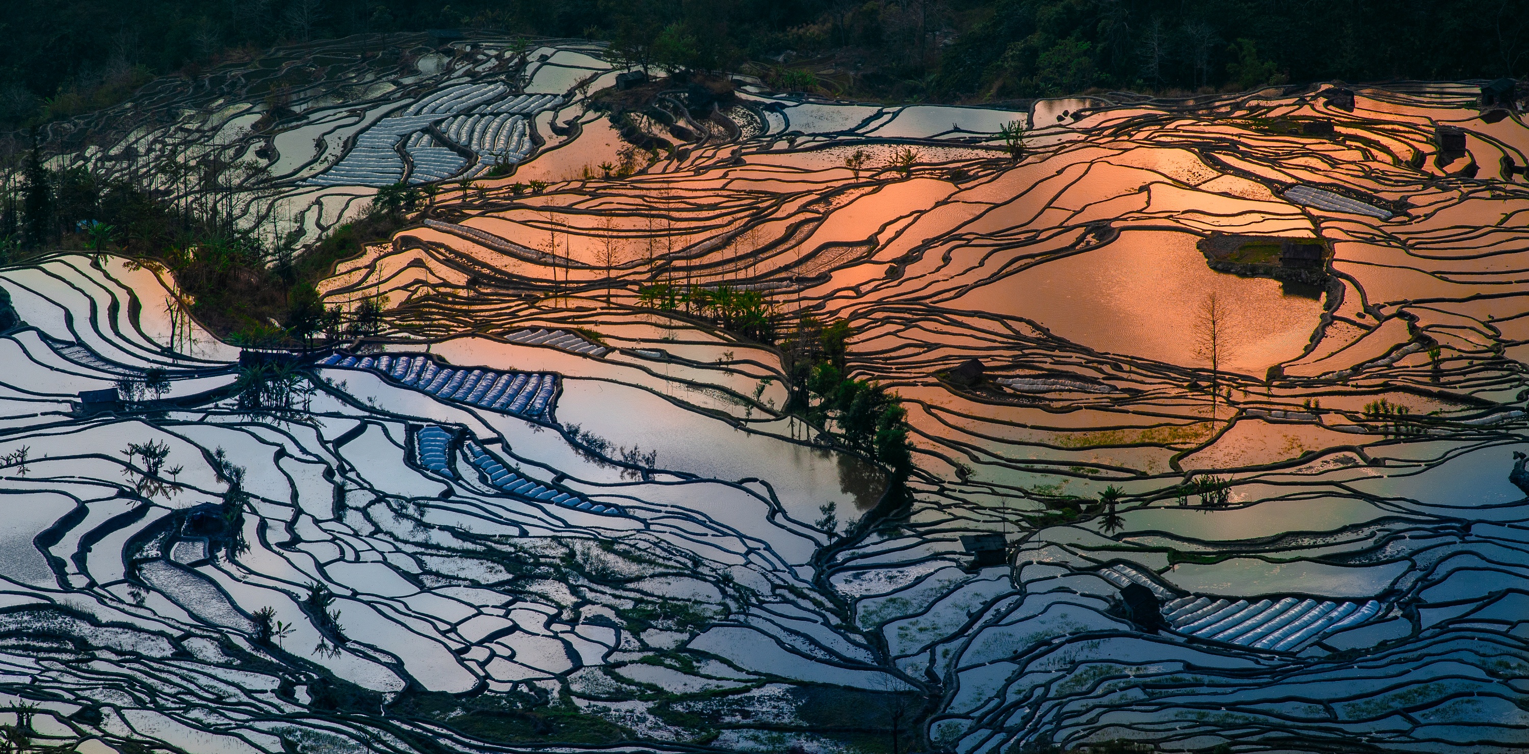 在霞光万丈中感受梯田壮美的日出日落